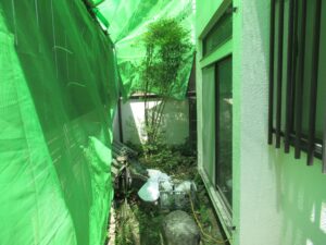 お隣にほこりが舞っていかないよう、外側もネットで養生しました。