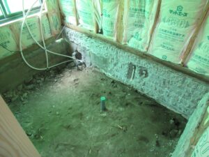 このあとは、土間にコンクリートを打設して、システムバスを設置していきます。