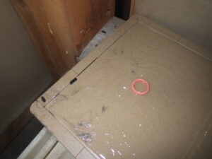 そして1週間後、当初の2回目にあたる点検の際に、粘着シートにねずみが捕まっていました。お客様からもこの間の次の日からは物音はしなくなったとのことでしたので、外の隙間を防鼠パテで埋めました。