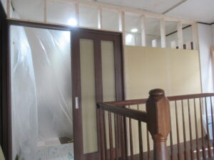 茅ヶ崎市内の築28年戸建てにて、2階リビング入口の間仕切り造作工事を行いました。