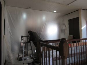 リビング側へホコリが入らないよう、しっかり養生を行ってから作業開始。