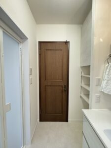 洗面室の入口があるため、洗面台左横はカウンターの奥行が狭くなっていました。