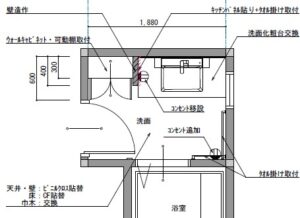 洗面室と浴室の仕上がりがお洒落な空間になるようプランを練っていきます。